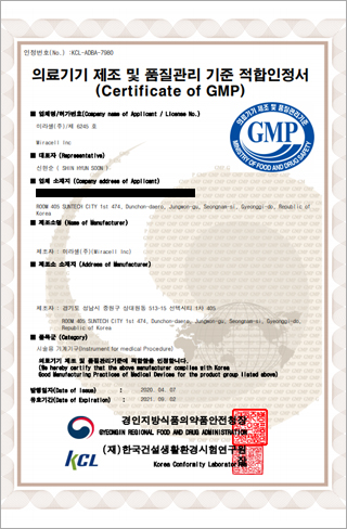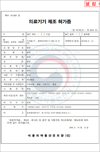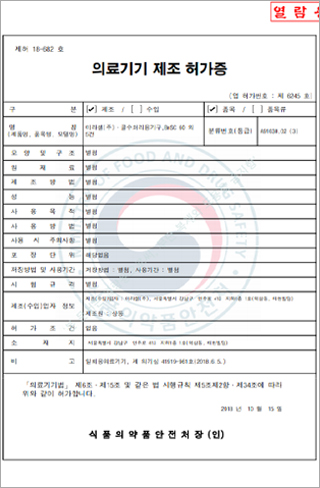 KFDA 의료기기 제조 허가증
