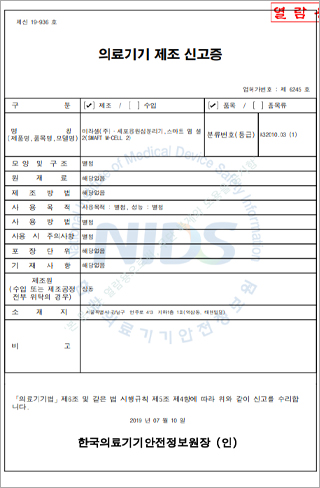 의료기기 제조 신고증