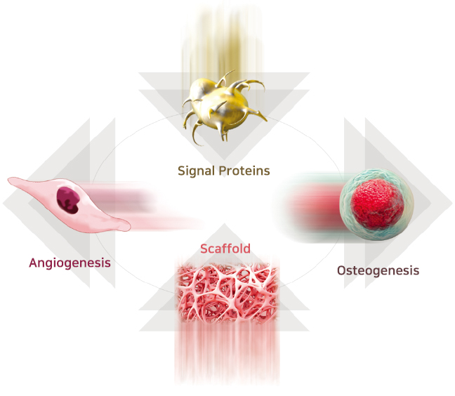 Kemik oluşumu, hasarlı bölgelerde toplanan endotel hücreleri, hematopoetik kök hücreler, mezenkimal kök hücreler ve destekleyici yardımcı hücreler tarafından belirlenir. Otojen kemik iliği