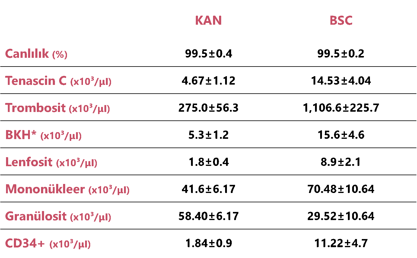 Klinik etkililik için CD34+ (Kök Hücre Belirteci) olması gereklidir.